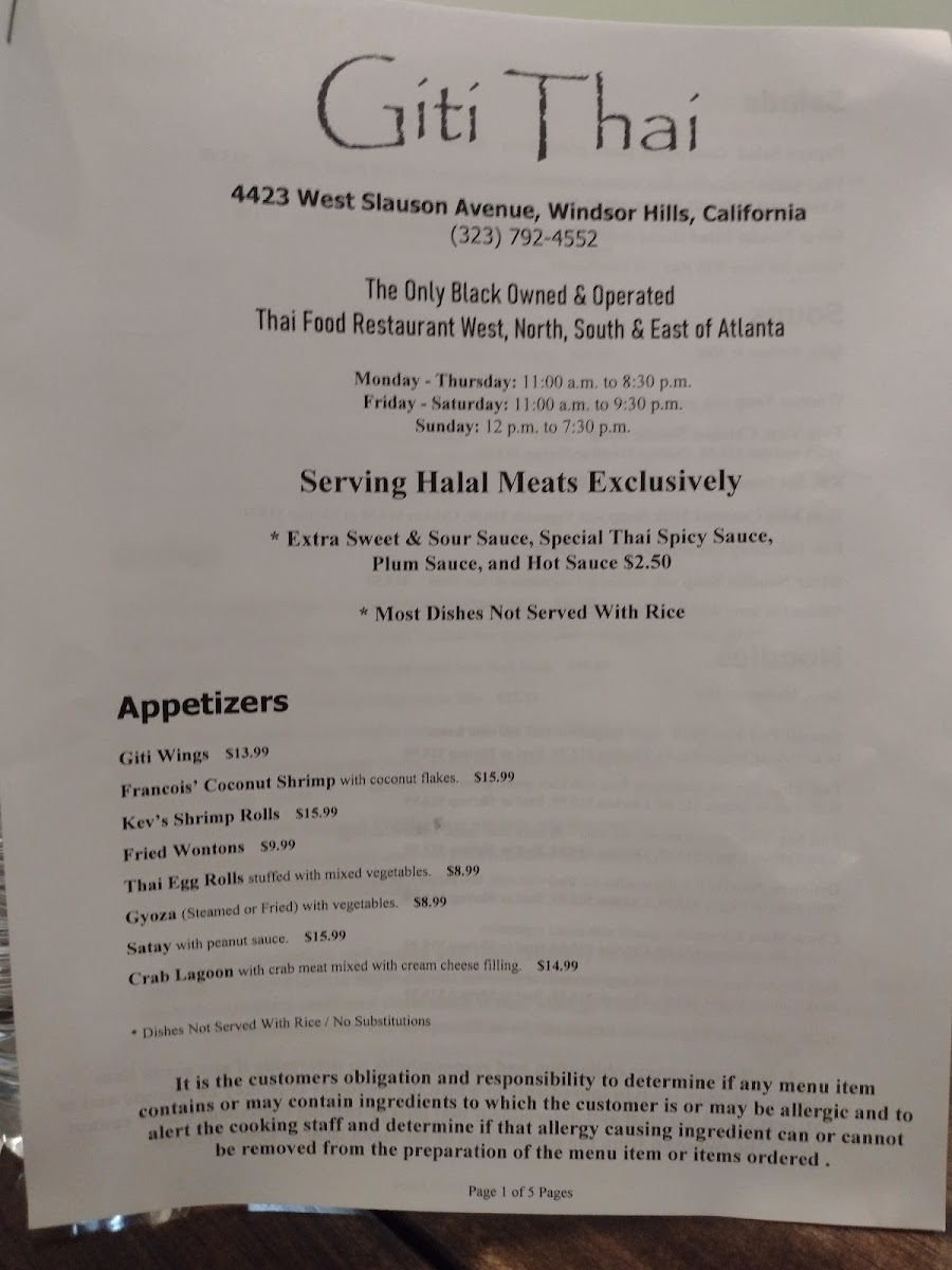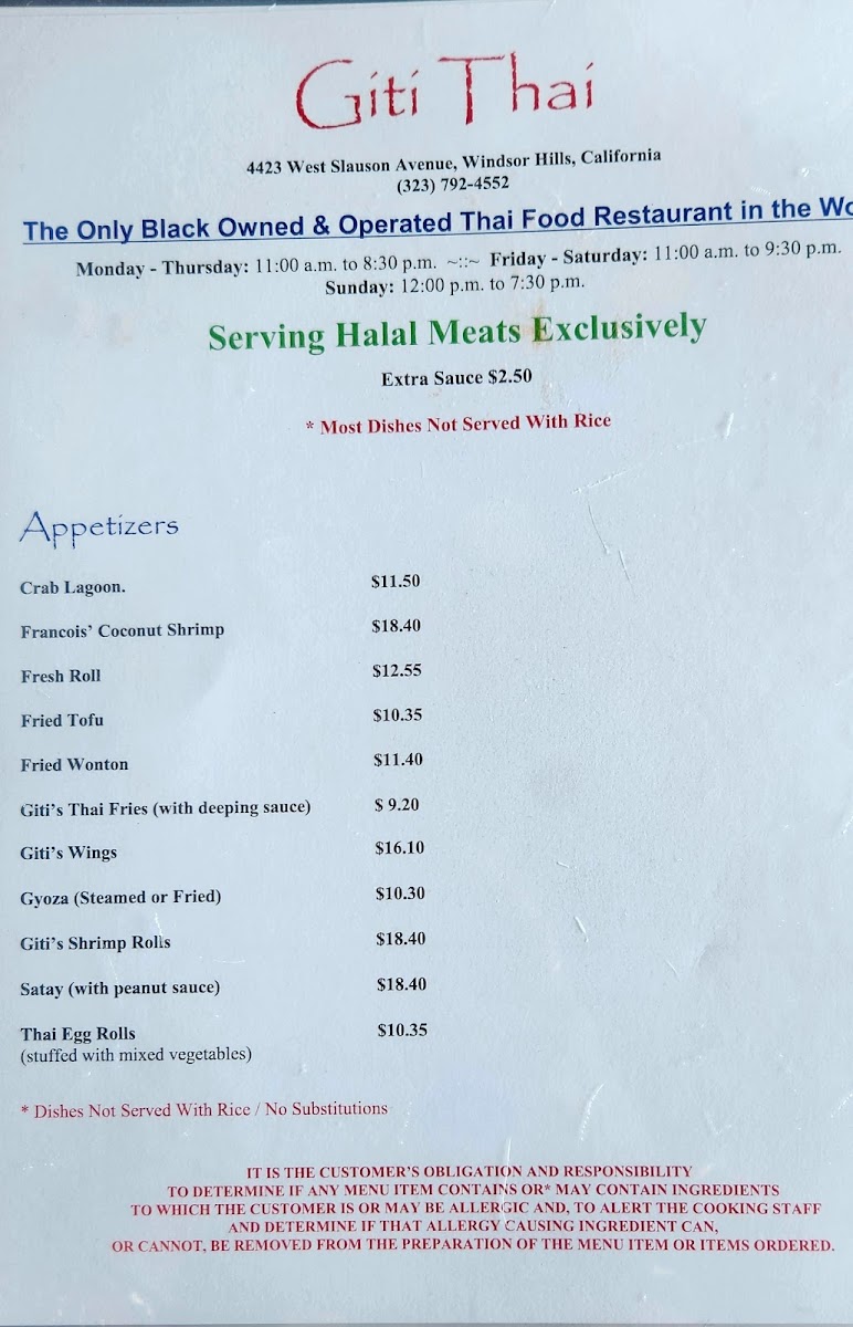 Next time you find yourself in View Park-Windsor Hills, take a delightful detour to Giti Thai—it’s more than just a meal; it’s an experience filled with warm hospitality and immersively delicious flavors that will leave you returning for more.